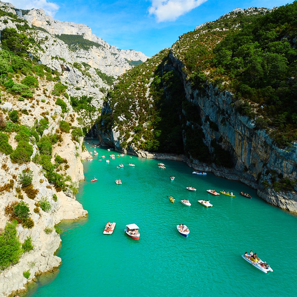 6. den: Z Castellane průjezd zvlněnou krajinou národního parku Verdon. Úžasné výhledy během celé etapy – na vyhlídkovém okruhu „Route-des-Crétes“ jsou terasy v 70metrové výšce nad hladinou Verdonu! Dojezd k jezeru Sainte-Croix. Možnost prohlídky skalního městečka Moustiers-Ste-Marie, ev. jízda na šlapadlech nebo lodičkách. Busem zpět do kempu. Varianty 34–47 km lze prodloužit o vyhlídkový okruh +22 km. Zajížďka do Moustiers-Ste-Marie +3km/1 cesta.